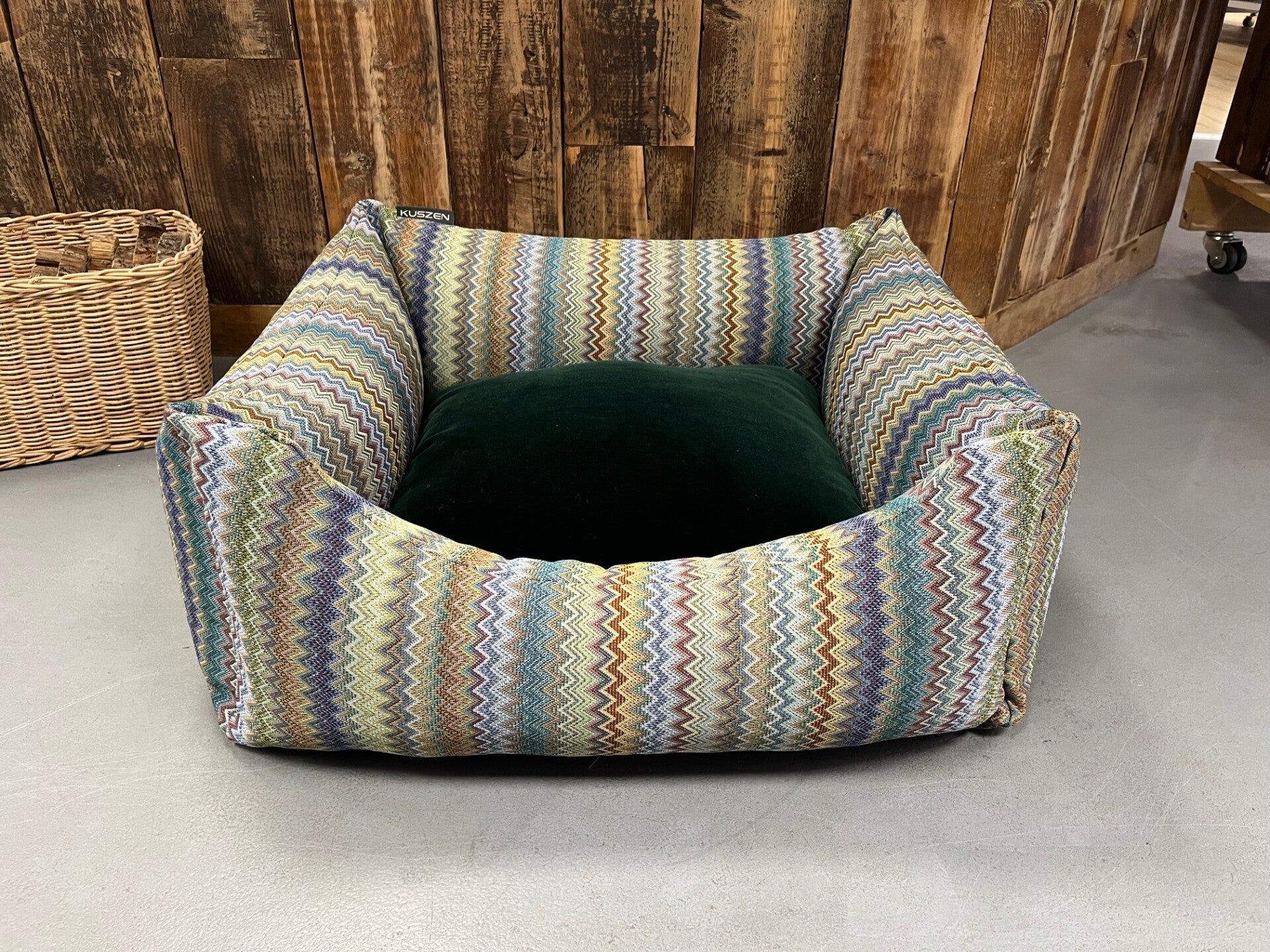 Dankzij onze flexibele aanpak kunnen we ver gaan in het realiseren van jouw wensen. Of het nu gaat om sierkussens in een afwijkend formaat, een andere maat poef, of een hondenmand die perfect past bij jouw interieur en huisdier; bij KUSZEN is bijna alles mogelijk. Kies uit diverse luxe stoffen – inclusief onze kenmerkende zigzag stoffen – bepaal de vulling en bespreek met ons jouw speciale vormen of andere unieke ideeën. Elk detail kan naar wens worden aangepast, zodat het eindproduct naadloos aansluit bij jouw verwachtingen.
