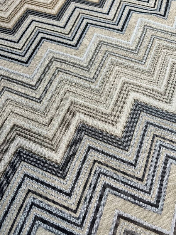 BLACK LABEL sierkussen in een brede ZigZag. De handgemaakte hoes met rits is aan beide zijden van een luxe jacquard stof. Elk kussen is uniek in zijn motief, doordat de patroongrootte van de stof afwijkt van de verschillende kussenmaten.