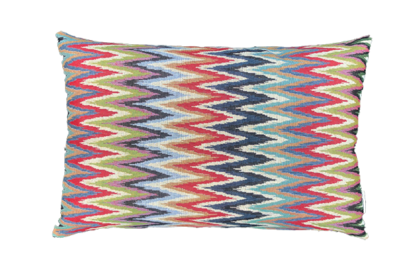 Luxe sierkussen in een multicolor ZigZag. De handgemaakte hoes met rits is aan beide zijden van gobelinstof. Een sterke en duurzame stof. Elk kussen is uniek in zijn motief, doordat de patroongrootte van de stof afwijkt van de verschillende kussenmaten.