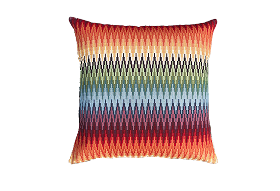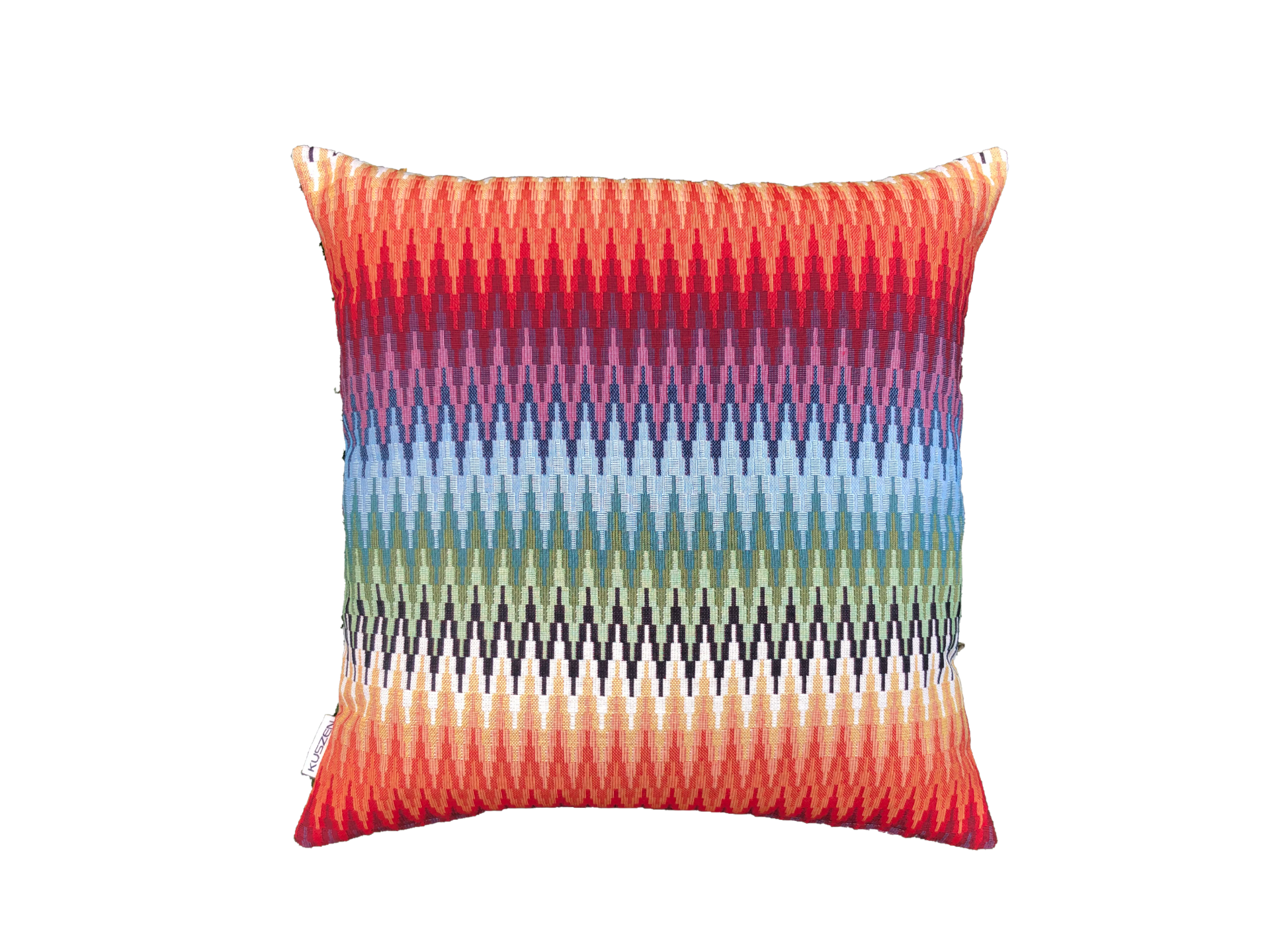 Luxe sierkussen in een multicolor ZigZag. De handgemaakte hoes met rits is aan beide zijden van gobelinstof. Een sterke en duurzame stof. Elk kussen is uniek in zijn motief, doordat de patroongrootte van de stof afwijkt van de verschillende kussenmaten.
