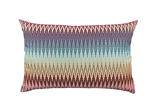 Luxe sierkussen in een pastelkleurige ZigZag. De handgemaakte hoes met rits is aan beide zijden van gobelinstof. Een sterke en duurzame stof. Elk kussen is uniek in zijn motief, doordat de patroongrootte van de stof afwijkt van de verschillende kussenmaten.