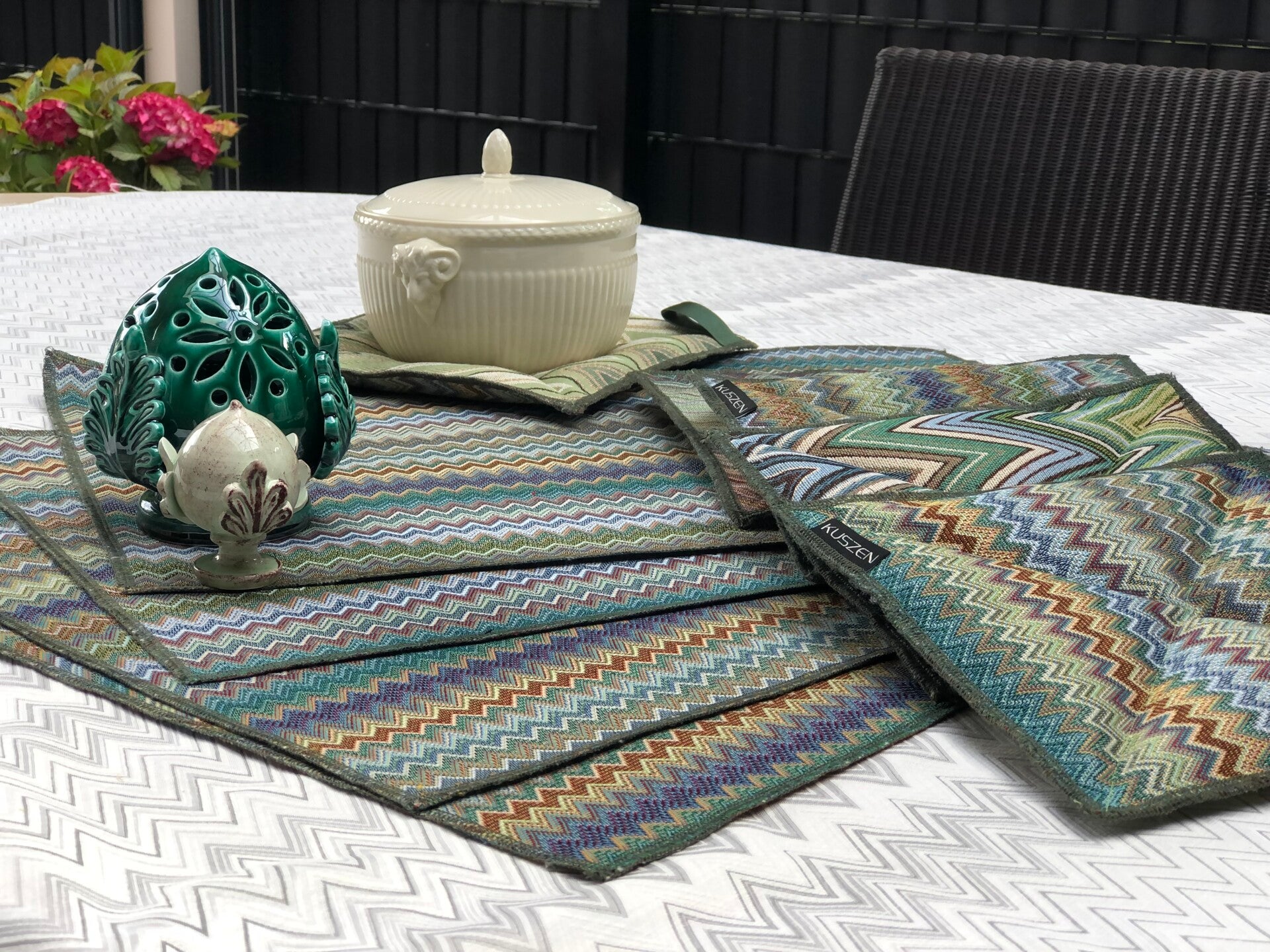 Luxe sierkussen in een kleine ZigZag. De handgemaakte hoes met rits is aan beide zijden van gobelinstof. Een sterke en duurzame stof. Elk kussen is uniek in zijn motief, doordat de patroongrootte van de stof afwijkt van de verschillende kussenmaten.