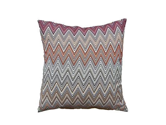 Luxe sierkussen in een soepele, digitaal geprinte ZigZag. De handgemaakte hoes met rits is aan beide zijden van een geprinte polyester stof. Elk kussen is uniek in zijn motief, doordat de patroongrootte van de stof afwijkt van de verschillende kussenmaten.